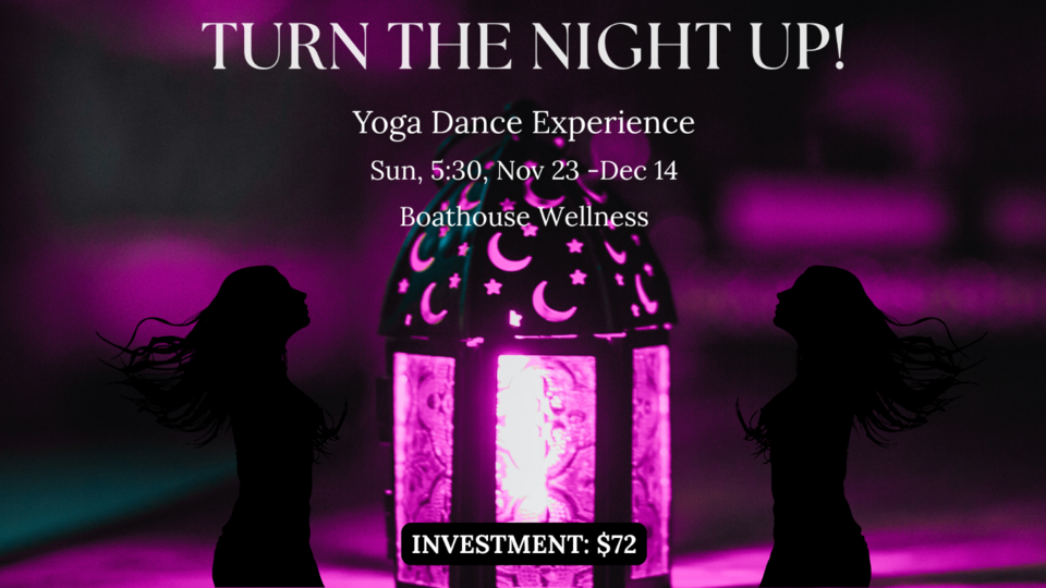 Let's Turn The Night Up! With this empowering & uplifting Yoga Dance Experience. The clocks have gone back & the darkness has set in. But that doesn't mean we have to succumb to the darkness. Let's come together to move & dance in the dark!